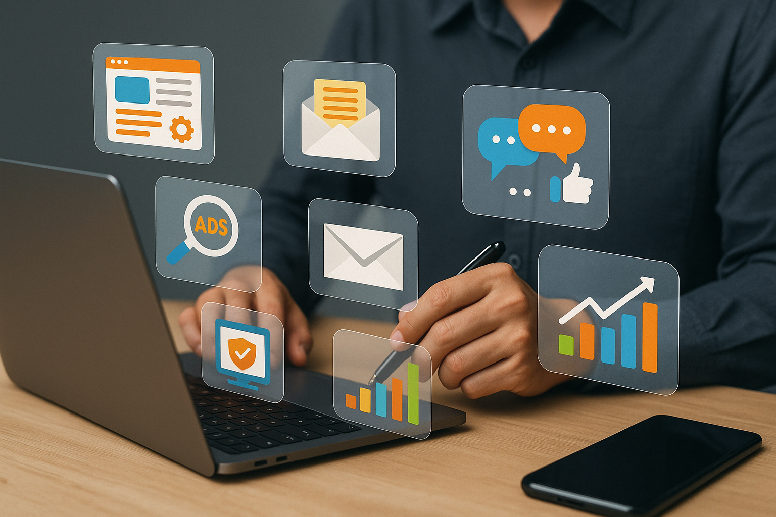 Starke Produkte und Dienstleistungen verdienen starke Sichtbarkeit. Wir sorgen dafür, dass Ihre Kunden nicht nur zuhören, sondern handeln – mit Marketing, das überzeugt, differenziert und messbar wirkt.